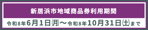 物価高騰による市内の個人消費への影響を緩和し、市内での消費活動を促進し、地域経済の活性化を図るため、新居浜市地域商品券を発行いたします。